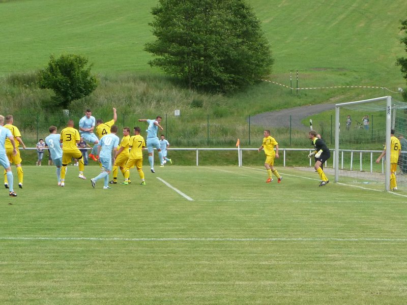 Auf dem Rasen ging schnell die Post ab. Hofrath erzielte per Flachschuss das 0:1, kurz darauf wurde Hansch im Strafraum gelegt. Fink erhöhte per Elfer auf 0:2. Ziereis glänzte durch die Treffer zum 0:3 und 0:5, ließ zwischendurch aber weitere große Möglichkeiten (23., 24., 39.) ungenutzt. Den schönsten Treffer der ersten Hälfte erzielte Fink, der kurz vor der Pause aus dem Rückraum sehenswert aus 25 Metern ins Dreiangel einhämmerte. Die zweite Halbzeit stand im Zeichen von Ziereis und Glasner, die den 600 Zuschauern ihren Torriecher präsentierten. Innerhalb von 17 Minuten schnürte Ziereis einen Hattrick (0:11, 0:12, 0:13), allerdings kam ihm zu Gute, dass er von Heine als zentrale Spitze aufgeboten wurde. Glasner (3 Tore) agierte ebenso wie Türpitz (2 Tore), Pusch (1x), Mauersberger (2x) und Ofosu (2x) aus dem offensiven Mittelfeld. Der letzte Treffer zum 0:22 fiel in der 86. Minute, unmittelbar danach pfiff Schiedsrichter Markowitz (Zwickau) ab und klaute der Partie die letzten 4 Minuten. Das 0:22 zu werten, fällt schwer, da der Gegner - bei allen Respekt - einfach zu schwach war. Positiv bleibt festzuhalten, dass die neuen Stürmer zu wissen scheinen, wo das Tor steht. Auch Endres lieferte in der Abwehr und als Lautsprecher wiederum eine auffällige Partie ab. Testspieler